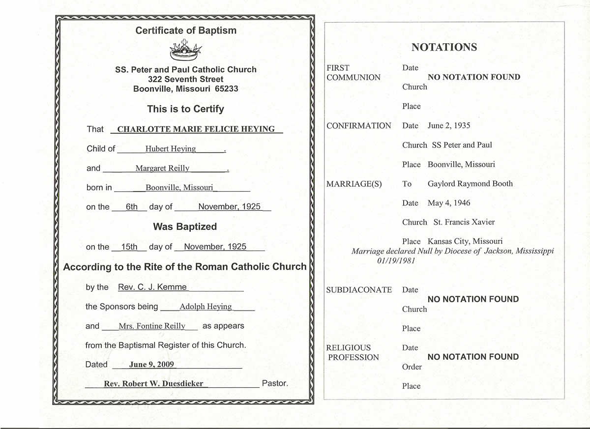 Felice Heying's Communion & Confirmation took place at Sts. Peter and Paul Catholic Church, Boonville. |